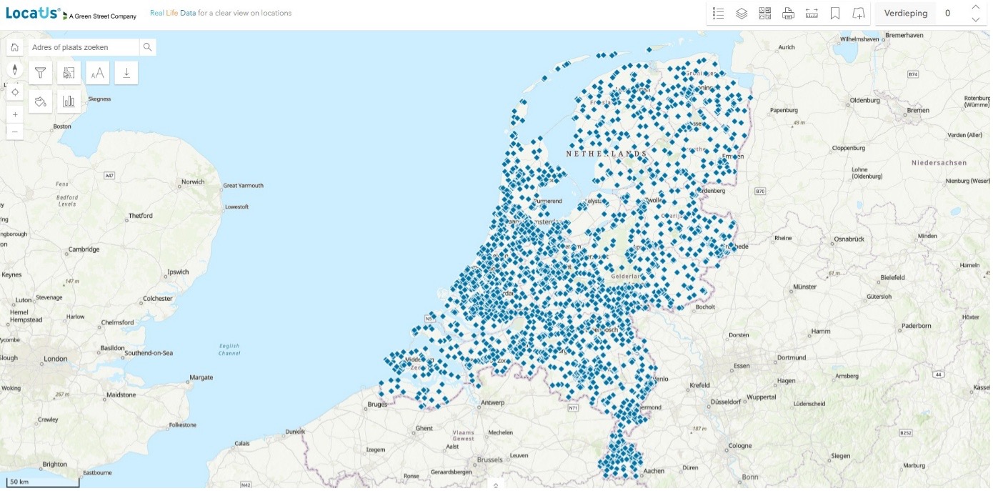Van Locatus nemen wij af de database met alle supermarkten in Nederland en de online GOAD kaarten van de belangrijkste winkelgebieden in Nederland. Deze data geeft ons snel inzicht in het winkelbestand in een plaats en het verzorgingsgebied.